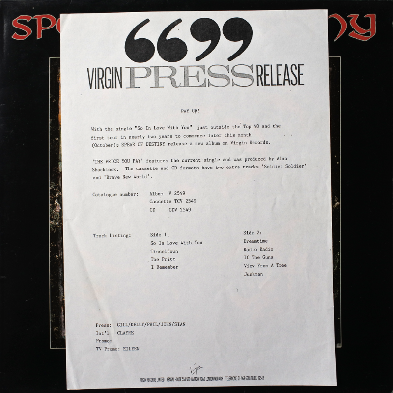 * Price you Pay - Test Pressing - London Cut Rejected by Terry Razor 04/08/1988 ** Price you Pay - Test Pressing - One sided (side 2) passed Terry Razor 15/09/1988 *** Price you Pay - 2 x 1 Acetate - Signed by Kirk as the only one and passed by Terry Razor 01/09/1988